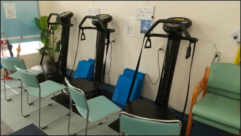 1.集団体操ー運動トレーナによる上下肢運動。ピラティスボール・セラバンドを活用した運動プログラム展開。 2.マシン6種類のサーキット形式のトレーニング (アブタクター・レッグプレス・レッグエクステンション・ツイスター・エアロバイク・ヴィブラマシン) 3.スクエアステップエクササイズを活用した転倒予防・認知機能低下プログラム ♡スタッフ含めたゆんたくタイムで癒しの時間♡ |