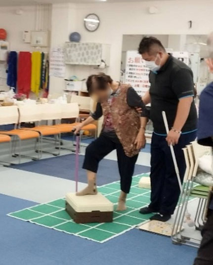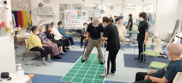 - 入浴・食事・排泄などの生活支援とスクエアステップを活用した転倒予防、認知機能低下予防プログラムを展開しています。